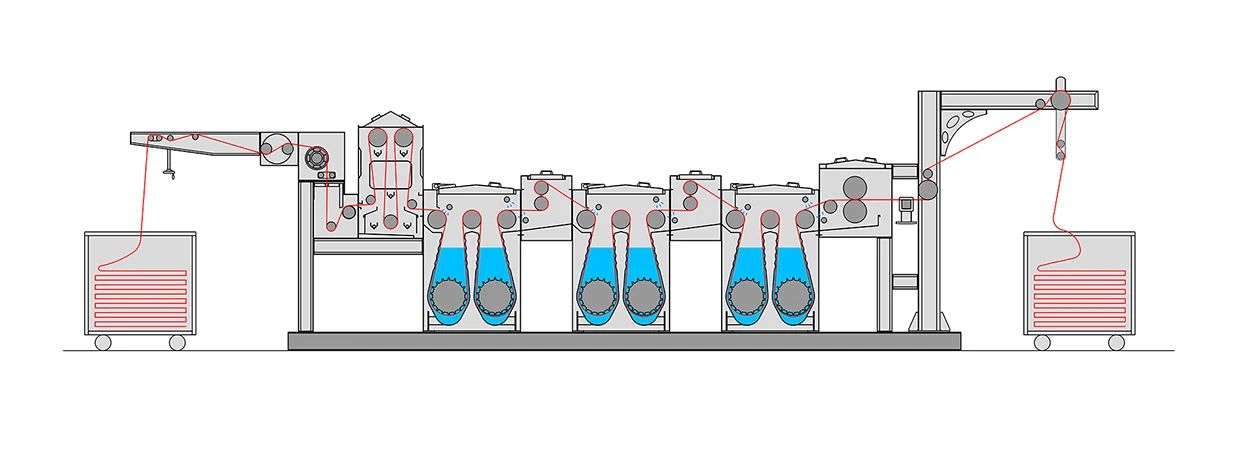 Suitable for oil removal and washing of nylon and polyester elastic fabric. Can be installed before feeding position of stenter machine, and linkage integrated use with the stenter machine.