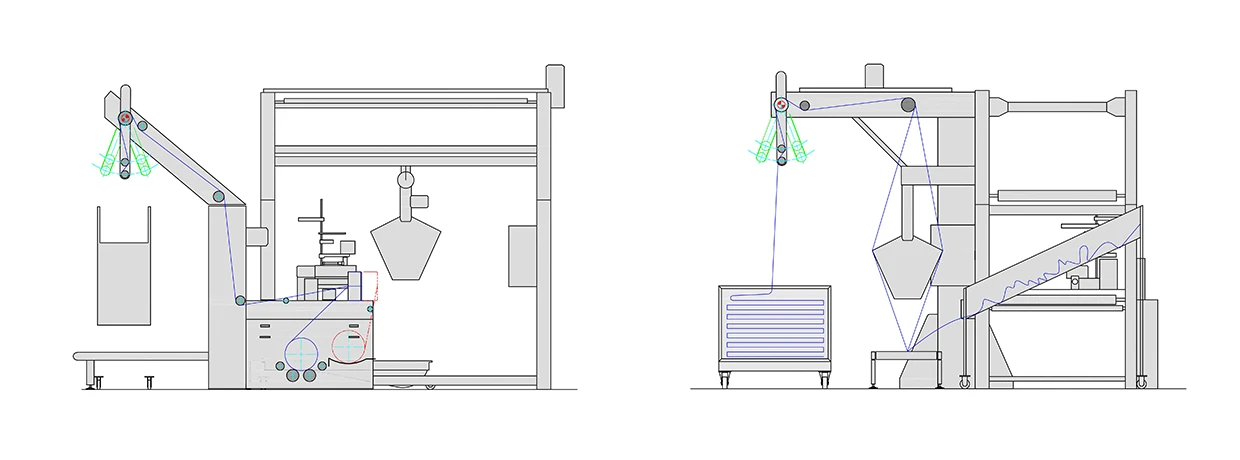 Tubular fabric is automatic sewing/unwinding/slitting/plaiting by one machine reduce the labor intensity.