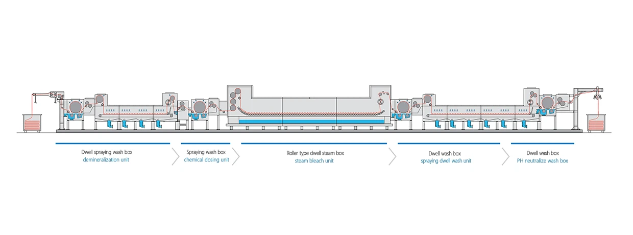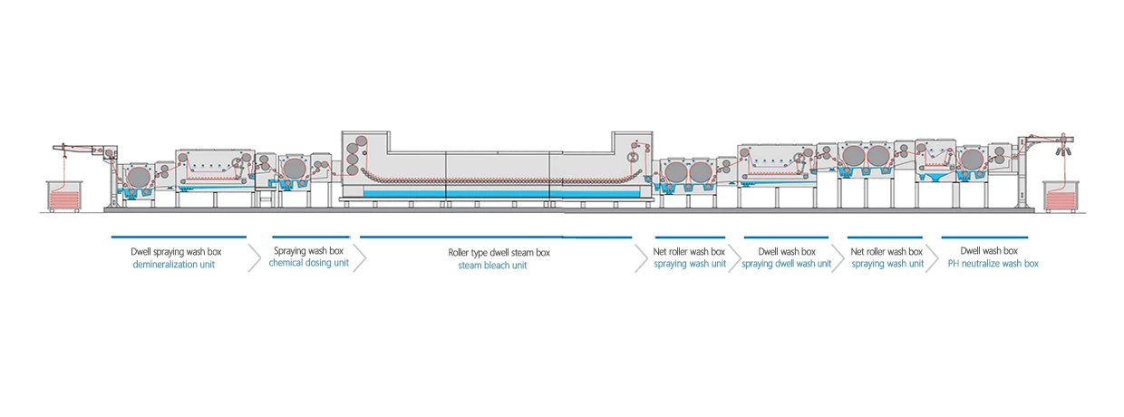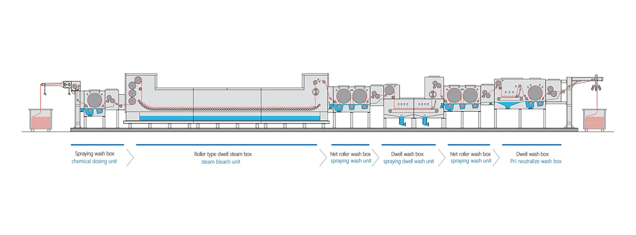 This machine is suitable for continuous scouring and bleaching of cotton and rayon knit fabric before dyeing